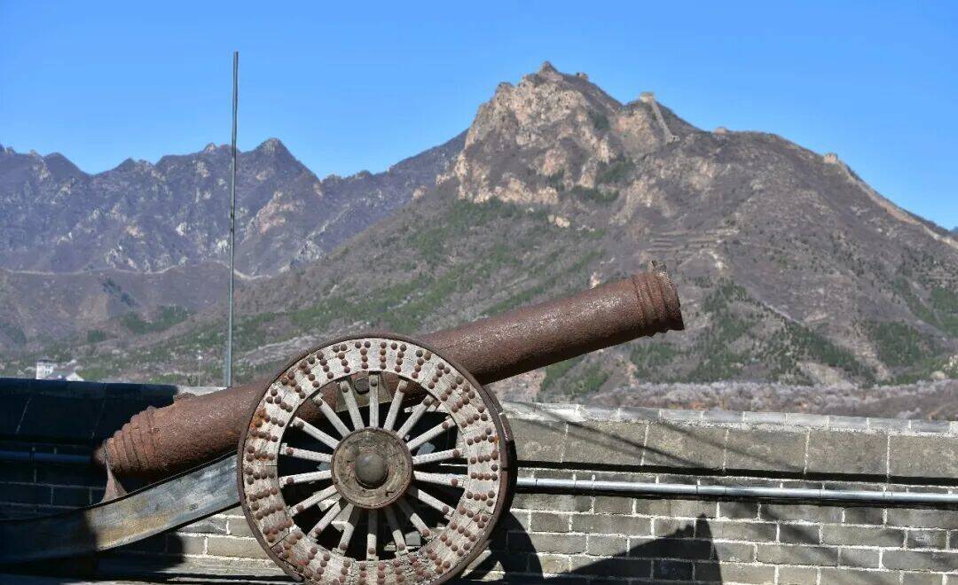 沿着公路穿过河西村、穿过潮河、穿过古北口村,从古北口城堡登上长城,城楼上一座炮台,映衬着远处的卧虎山,很是威武。